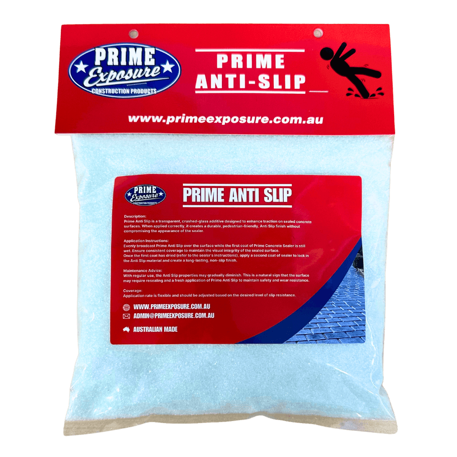 Hand broadcast Prime Anti Slip while applying the first diluted coat of Prime Exposure Sealer ensuring the sealer is still wet. It is very important to apply an even coat as it may effect the appearance of the sealer. Apply a second undiluted coat of Prime Sealer to lock in the Prime Anti Slip.